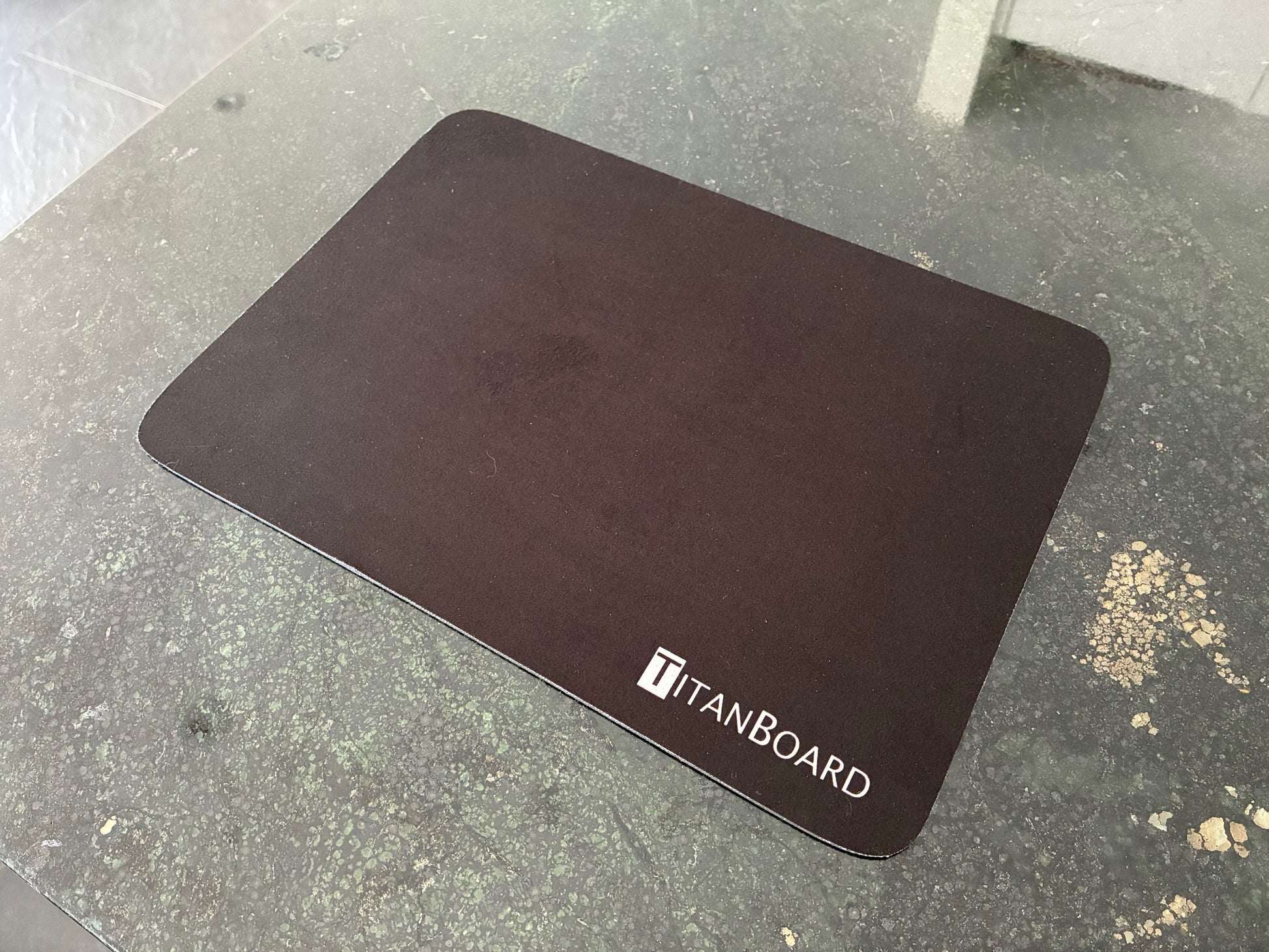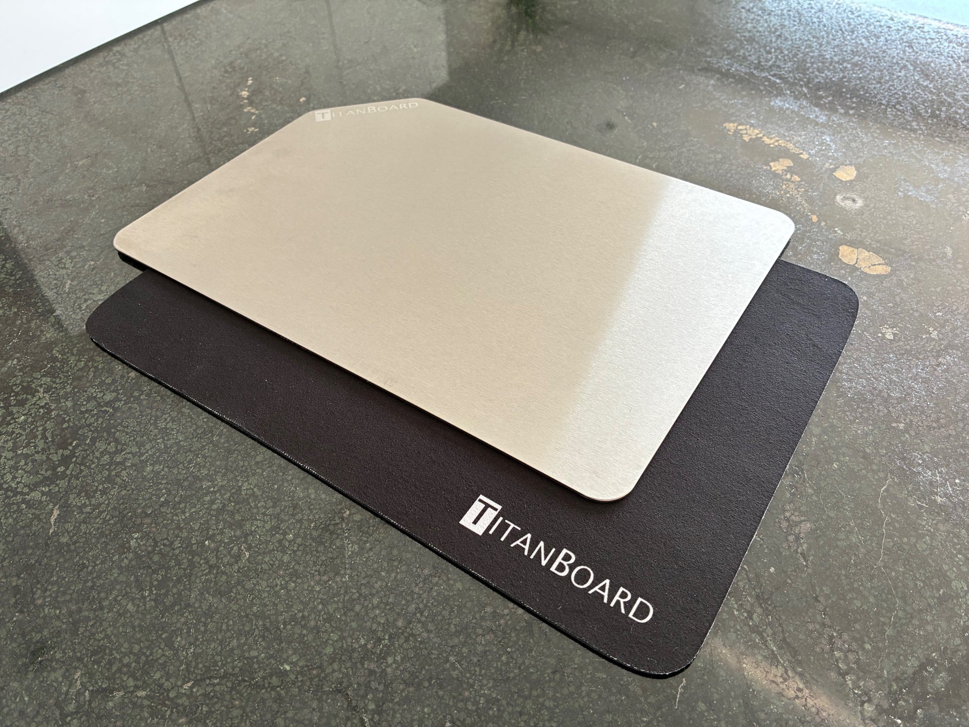 Habe mich für das Titanbrett entschieden und von Holz- und Plastikbrettern aus gesundheitlichen und hygienischen Gründen Abschied genommen.